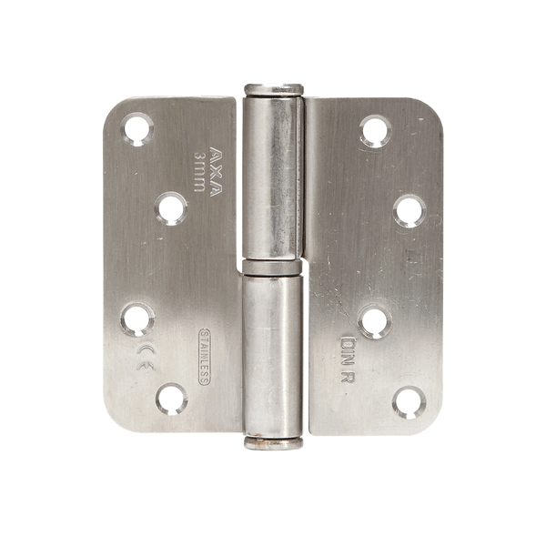 AXA Kogelstiftpaumelles zijn een van de meest gebruikte paumelle scharnieren op de Nederlandse markt. Kogelstiftpaumelles zijn scharnieren met een hoog draagvermogen, die zeer licht lopen. AXA Kogelstiftpaumelle Rond RVS 89X89x3mm Din Rechts 1203-25-81/E is een standaard scharnier voor naar binnendraaiende buitendeuren en alle binnendeuren.