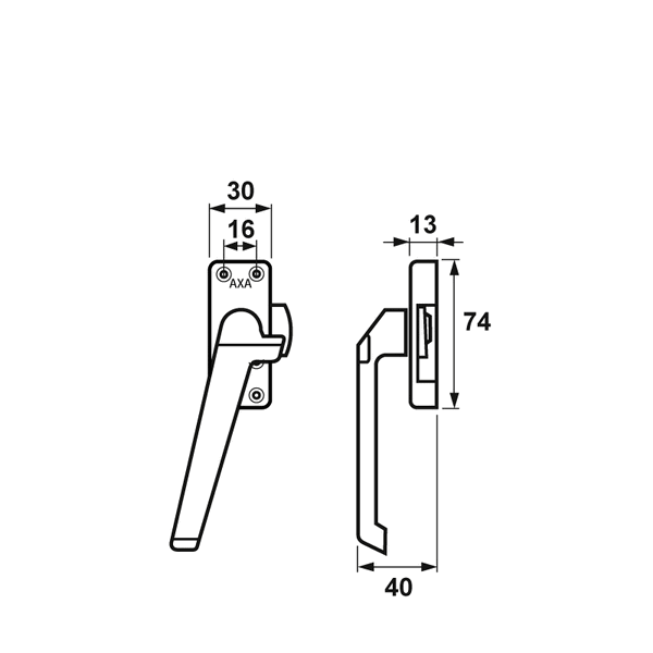 De AXA Raamsluiting 3302 is een standaard niet afsluitbare raamsluiting geschikt voor ramen en deuren. De stiftsluiting van deze Raamsluitingen loopt iets schuin waardoor het raam of de deur goed dicht, het nadeel van deze stiftsluiting is dat deze niet vastgrijpt in de sluitkom. Voor deuren adviseren wij de raamsluiting omgekeerd te monteren om onbedoelde vergrendeling te voorkomen.
