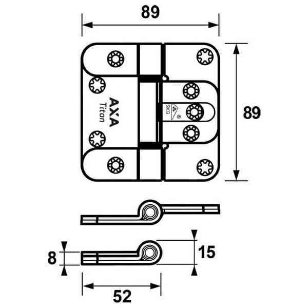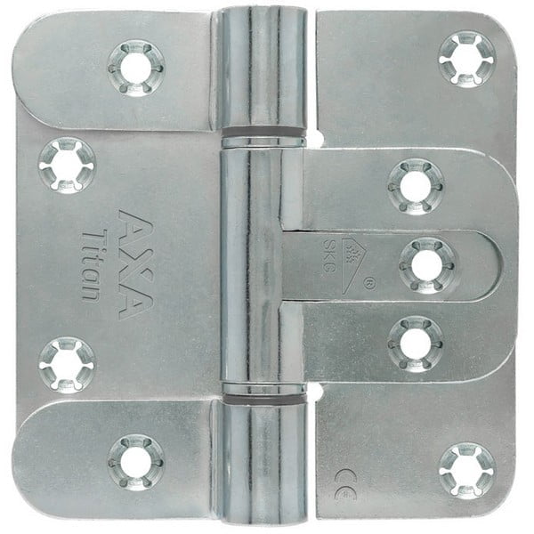 Het AXA Titan Veiligheidsscharnier is een uniek scharnier voorzien van een onderhoudsarme conische Pomlagers, dubbel gerolde scharnierbledden voor een extreem draagvermogen en het AXA Titan scharnier heeft geen Dievenpen meer nodig door de speciaal gefixeerde Scharnierpen. Bij het toepassen van drie scharnieren voldoet de deur aan het SKG*** keurmerk.