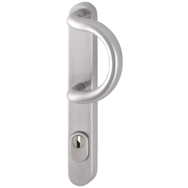 HOPPE Smalschild met Kerntrekbeveiliging PC92 Buitenschild met Beugel Afgerond E538G/3359ZA RVS SKG*** HOPPE Smalschild met Kerntrekbeveiliging PC92 Buitenschild met Beugel Afgerond E538G/3359ZA RVS SKG*** is voorzien van een verende Kerntrekbeveiliging die verstelbaar is voor Profielcilinders die 10-18mm uit de deur steken, het buitenschild kan gecombineerd worden met een binnengarnituur met verende deurkruk, dit voorkomt een hangende deurkruk. HOPPE Smaldeurbeslag met Kerntrekbeveiliging is speciaal ontwikkeld voor situaties waar weinig montageruimte beschikbaar is zoals: Kunststof en metalen deuren of Houten deuren met opliggende glaslatten. Bij dit product kunt u de binnenzijde los selecteren en heeft u een montageset nodig.