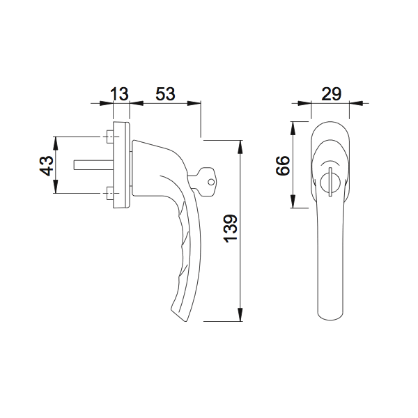HOPPE Tokyo Draai-Kiep Raamgreep Afsluitbaar 0710S/U26 Stift:7x32mm F1 SKG**
