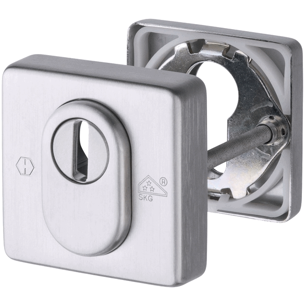 HOPPE Veiligheidsrozetten met Kerntrekbeveiliging E52NSB-ZA/52S 55x55mm RVS DD:35-56mm SKG*** zijn voorzien van een verstelbare Kerntrekbeveiliging voor Profielcilinders die 10-18mm uit de deur steken. RVS Veiligheidsrozetten van HOPPE worden geleverd met twee soorten lengtes Metaalschroeven voor meest voorkomende deurdiktes. HOPPE Veiligheidsrozetten met Kerntrekbeveiliging E52NSB-ZA/52S 55x55mm RVS DD:35-56mm SKG*** zijn vervaardigd uit hoogwaardig Roestvaststaal.