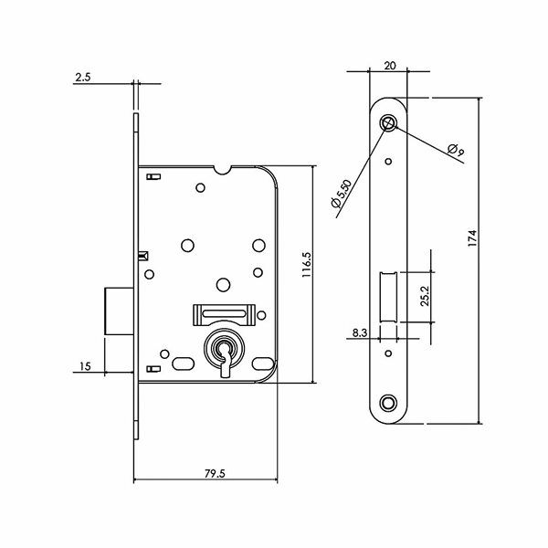 MAUER 1500 Serie Binnendeurslot Kastslot SL DM50 1535 (1256/17) RVS LS/RS (incl. Sluitplaat) Toepassing: Kastdeurslot met 2 klaviersleutels Geschikt voor: Woningbouw Binnendeuren Draairichting: Din Links en Rechts Doornmaat: 50mm Afwerking Voorplaat: RVS Meegeleverde Sluitplaat: RVS Sluitplaat met ronde hoeken (Rechts en Links toe te passen) Serie: MAUER 1500 Serie Type MAUER: 1535K Gelijk aan NEMEF Type: 1256/17 Artikelnummer: 01535K009309063
