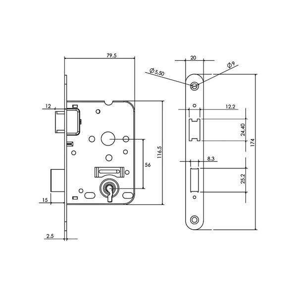 MAUER 1535 Klavierslot SL56 DM50 (1266/17) RVS LS/RS (incl. Sluitplaat)