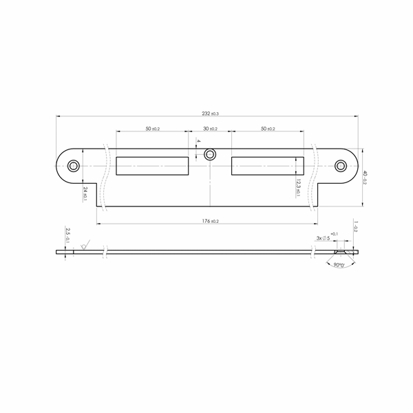 MAUER Sluitplaat Afgerond 454 voor Anti-paniekslot 4336/40 RVS Din LS/RS