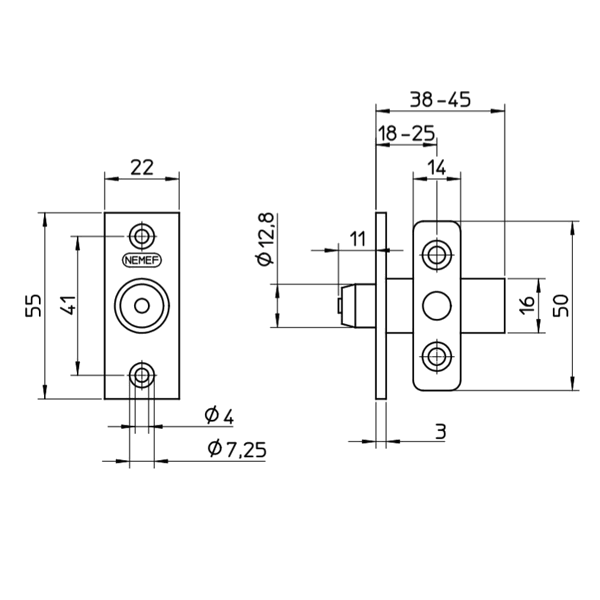 NEMEF Insteekgrendel voor Stersleutel 2603/4-25 DM25 F1 (Excl. Stersleutel) Toepassing: Afsluitbare Insteekgrendel met Stersleutel Inboormaat: 45mm Inboordiameter: 16mm Doornmaat: 25mm Schootuitslag: 11mm met Sluitpot Met Bevestigingsmateriaal Levering Exclusief Stersleutel S2603 Afwerking: Zamac Verzinkt Artikelnummer: 9260304250 Type: 2603/4-25