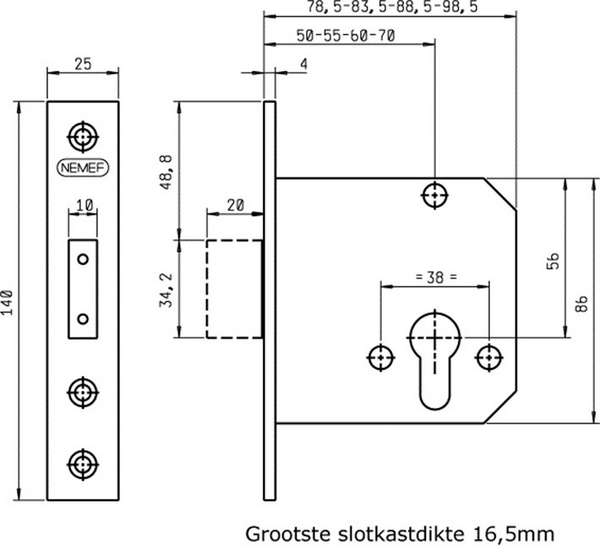 NEMEF Veiligheidsbijzetslot 4228/27 Afgerond DM60 RVS Din LS/RS SKG** (Incl. Sluitplaat)