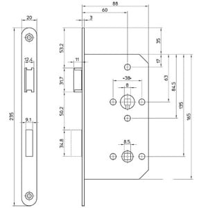 MAUER 8035 Badkamer/WC-Slot WC72 DM60 RVS DIN LS/RS (excl. Sluitplaat)