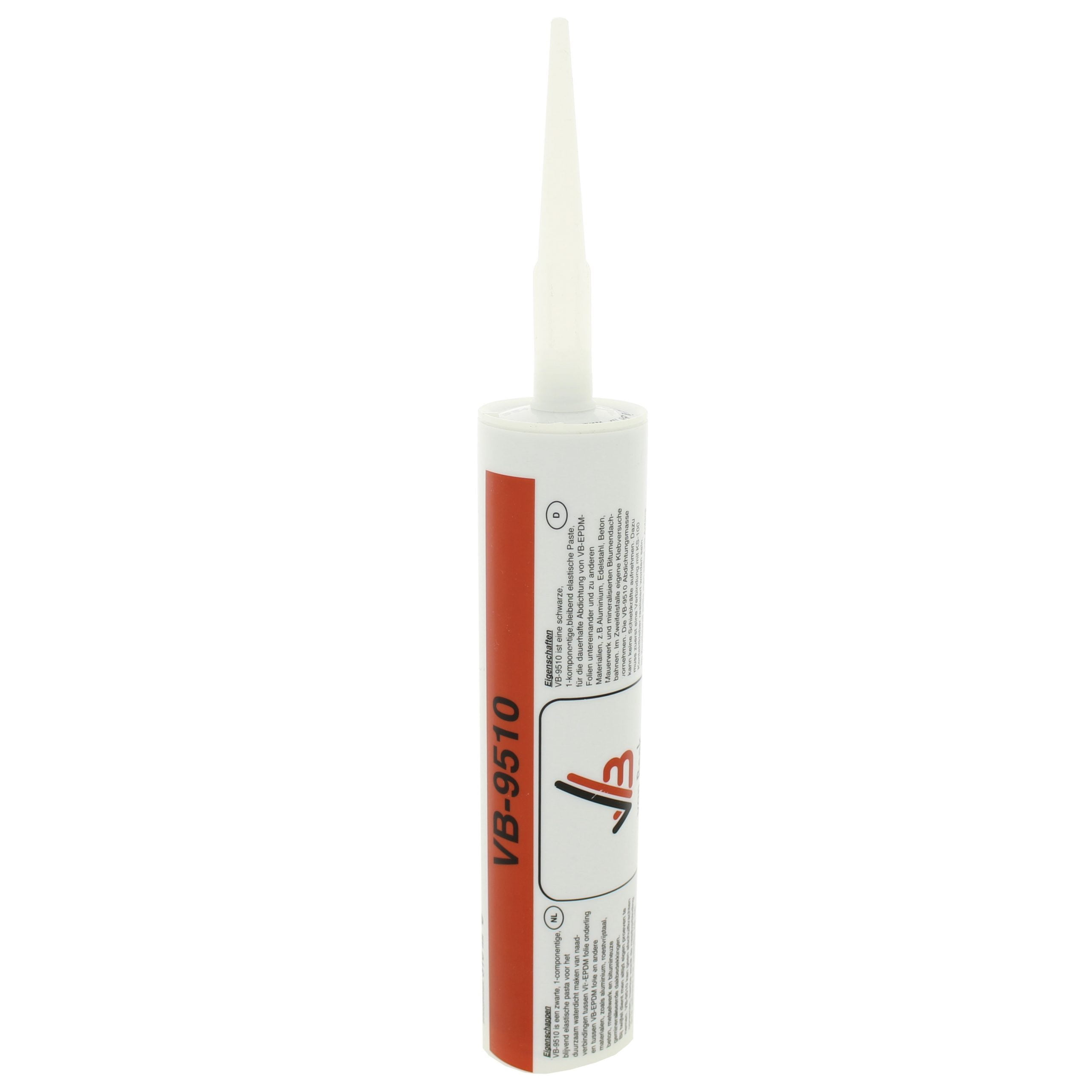 Met de VB EPDM Rubberkit VB 9510 kunnen details worden afgewerkt bij het EPDM Dakbedekking. Met EPDM-kit wordt de dakrand, het daktrim en de dakdoorvoer waterdicht afgesloten. De VB-9510 Rubberkit is een 1-componenten Afdichtingspasta geschikt voor verlijming van EPDM met Aluminium, RVS, Verschillende steensoorten en Bitumen. De verwerkingstemperatuur is vanaf 5?C. Eek koker van 290ml heeft een opbrengst van ongeveer 5m.